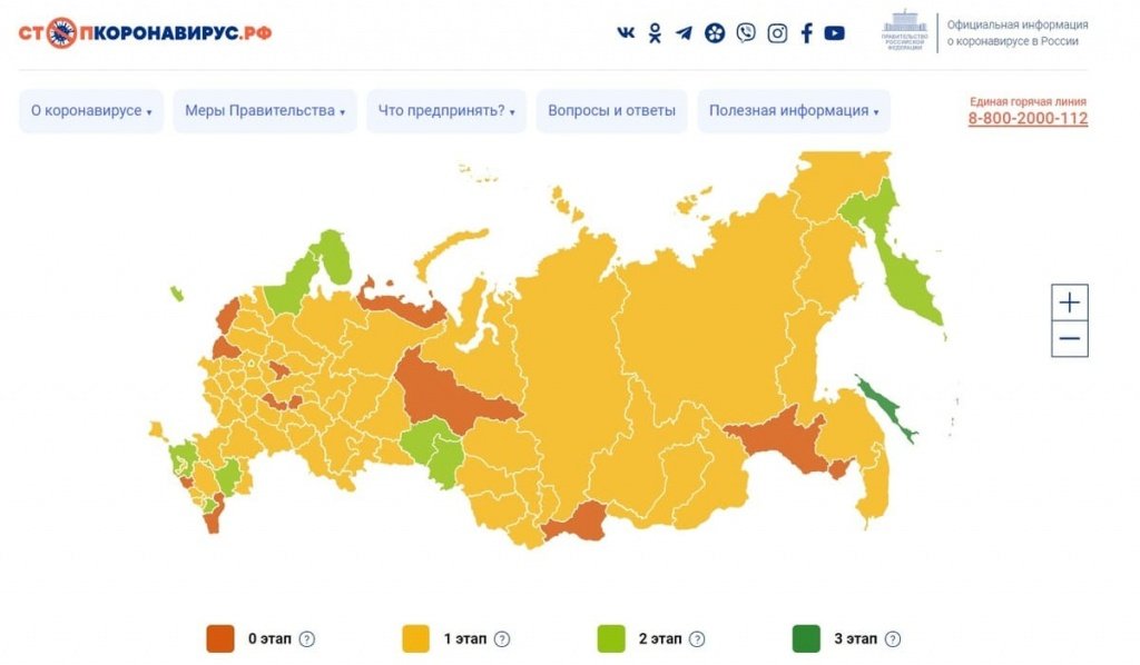 Какая обстановка с распространением коронавируса В РОССИИ, теперь можно узнать на карте регионов, которая появилась на портале стопкоронавирус.рф