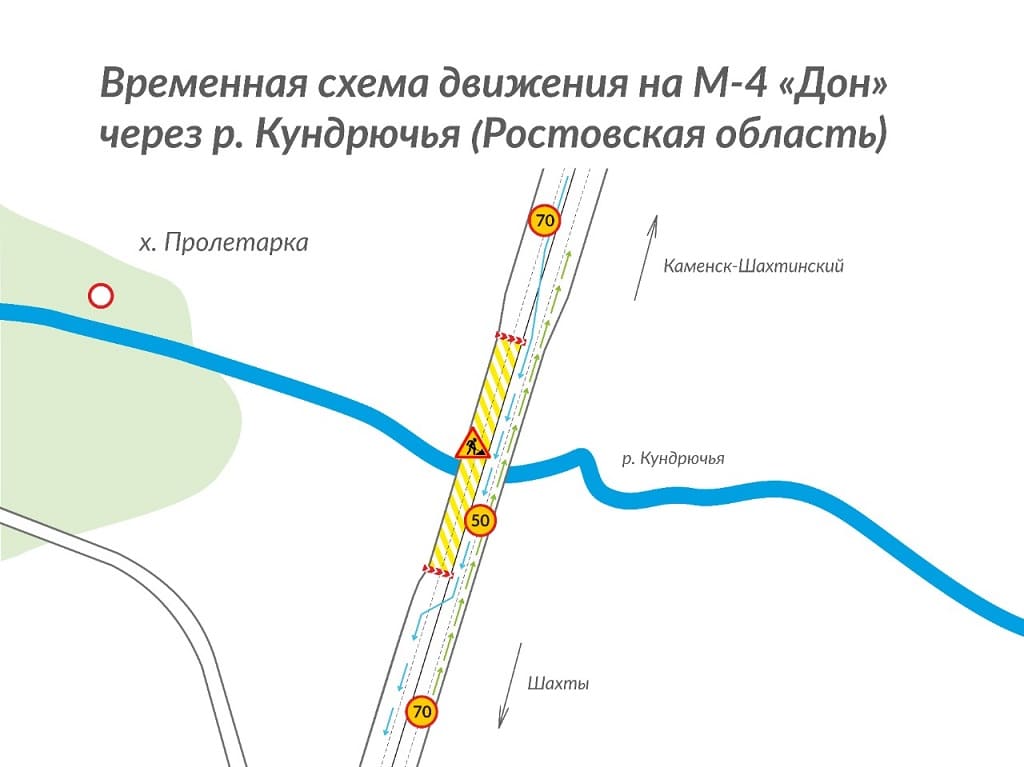 В Красносулинском районе Ростовской области на трассе М-4 «Дон» перекрыли половину моста в сторону донской столицы через реку Кундрючью, сообщается на сайте ГК «Автодор».
