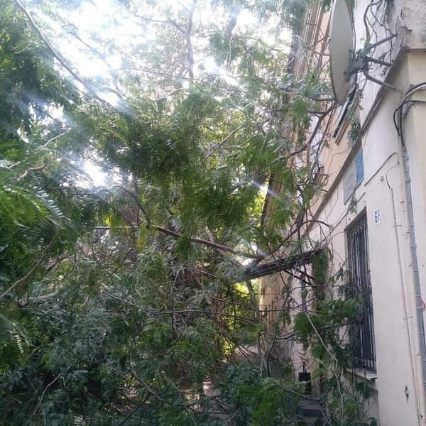 Вчера во время очередного порыва ветра в Октябрьском районе упало старое дерево и перегородило выход из подъезда. Пострадавших нет.