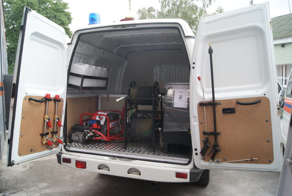 Специальные машины, оборудованные на базе «Газели», оснащены насосной установкой высокого давления, емкостями на 800 литров, а также рациями и громкоговорителями. Также в комплект выходят ранцевые установки, с помощью которых спасатели смогут распылять средства для дезинфекции или для тушения огня в труднодоступных местах — эти машины предназначены как для санитарной обработки площадей, так и для борьбы с ландшафтными пожарами.