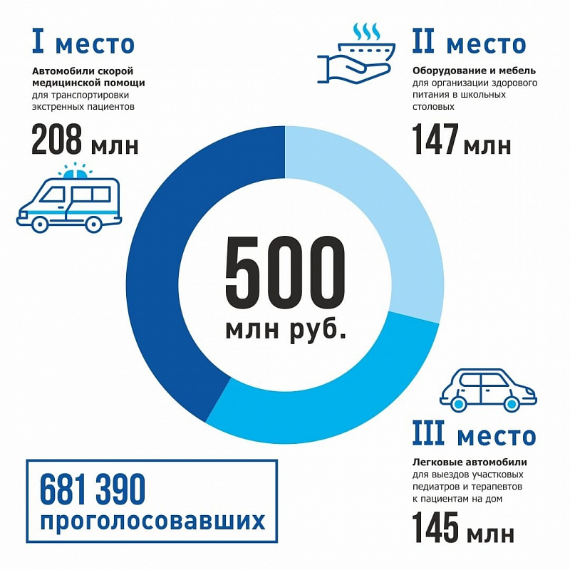 Больше всего людей высказались за приобретение автомобилей скорой помощи. На приобретение 60 скорых до конца года выделят 200 миллионов рублей.