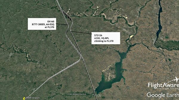 При этом российский борт набирал высоту, направляясь из Ростова в Москву, а арабский летел по маршруту Осло — Дубай.