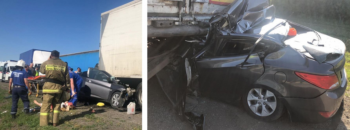 Предварительно в ГИБДД считают, что водитель Hyundai Solaris 1997 года рождения не справился с управлением и выехал на обочину, где столкнулся с полуприцепом грузовика Renault Magnum.