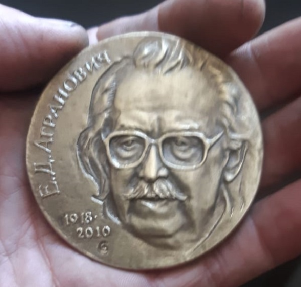 - На песнях Евгения Даниловича Аграновича воспитаны целые поколения, - говорит Шевкунов. - Его песни «Я в весеннем лесу пил березовый сок» из фильма «Ошибка резидента» и «Вечный огонь» из фильма «Офицеры» любят и поют миллионы. Потому что в в этих песнях нет ни нотки фальши. Созданы эти песни давно, но до сих пор трогают сердца людей. Мемориальную доску открывают по инициативе клуба авторской песни, бардов 60-70 годов. Я давно дружу с этими замечательными людьми. Это ученые, инженеры, работники закрытых предприятий. Их просьбу изготовить медаль памяти Аграновича я воспринял как почетное и обязывающее занятие. Автором портрета Евгения Даниловича на медали является мой товарищ скульптор Андрей Забалуев. Моя задача была не испортить его задумку, передать характер Аграновича. А вот оборотная сторона - моя.