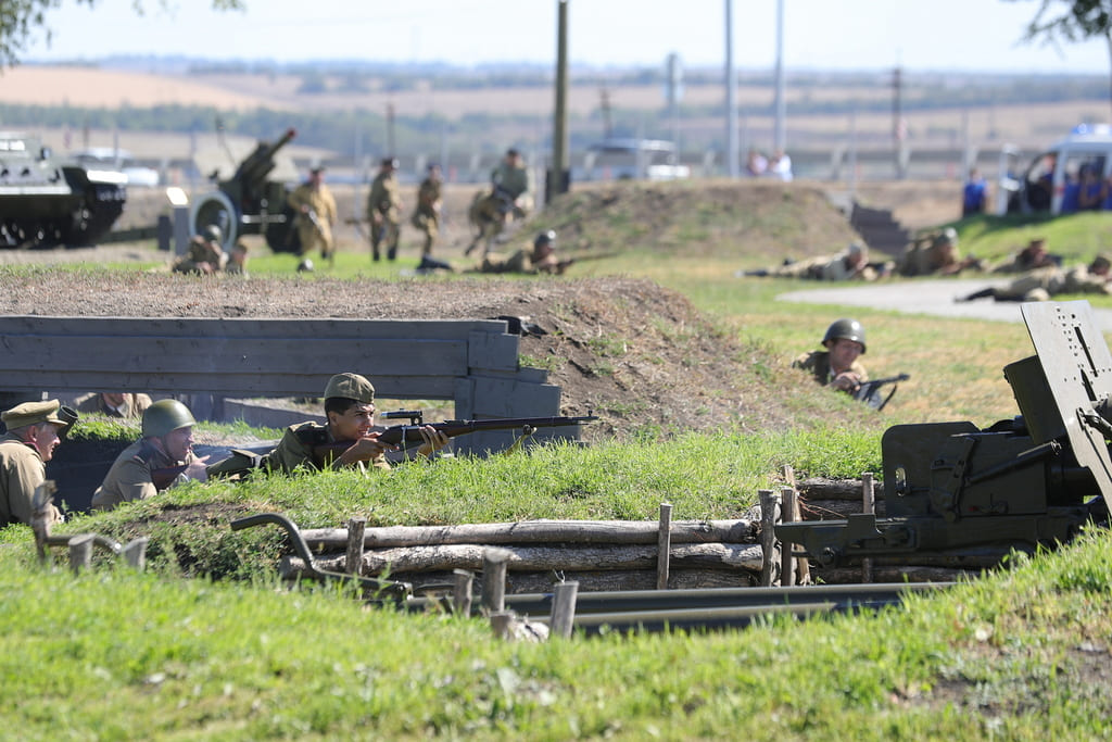В отдельном здании военно-выставочного центра работает виртуальная площадка. Здесь посетители, надев шлем виртуальной реальности, словно оказываются в самой гуще боя. Могут ощутить себя на месте механика-водителя, наводчика или командира танка – легендарной «тридцатьчетверки». Могут понять, что чувствовал пилот штурмовика Ил-2 в небе над занятым врагом Таганрогом. Могут с криком «ура!» идти на прорыв фронта…