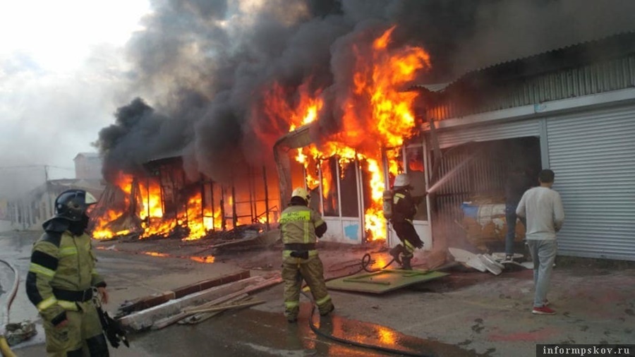 Огнем охвачены около 600 квадратных метров рыночных площадей.