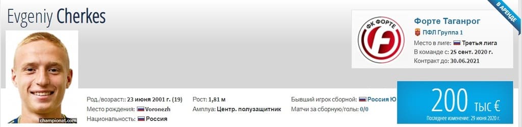 Полузащитник Евгений Черкес перешел в таганрогский «Форте», и также в аренду.