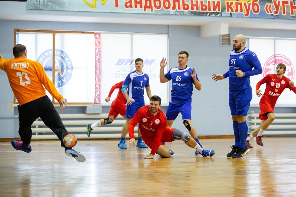 Ровная борьба шла только в начале первого тайма. Южане повели в счете, башкиры его сравняли – 3:3. После этого таганрогская дружина стала постепенно уходить в отрыв. Разыгрались Самарский и Михайлютенко. Благодаря их настойчивости в атаке преимущество гостей увеличилось вдвое – 12:6. Но концовка тайма прошла в очень упорной борьбе, и уфимцы немного сократили разрыв – 12:15.