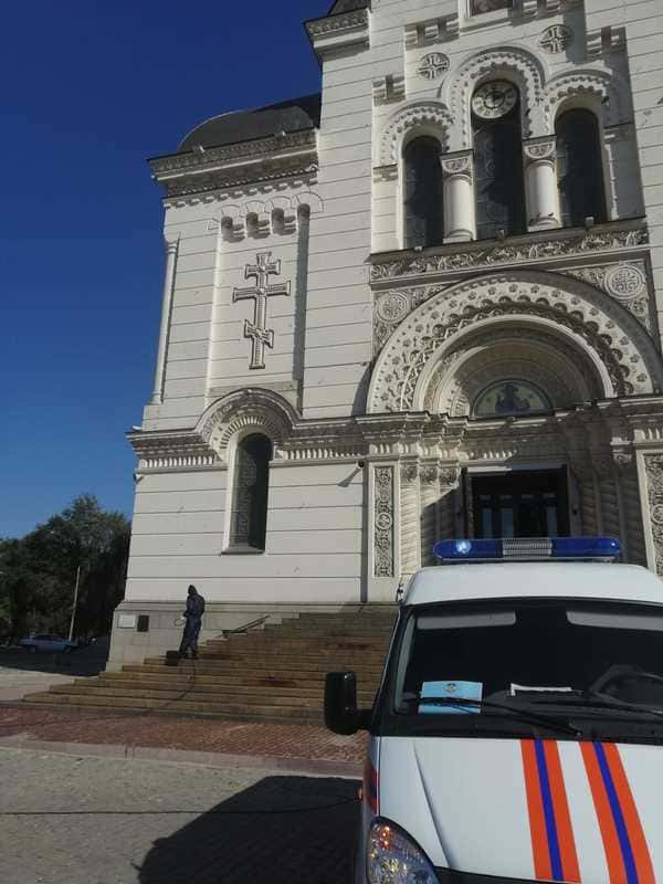 Донские спасатели дезинфицировали общие и служебные помещения храма, притворы и входы.