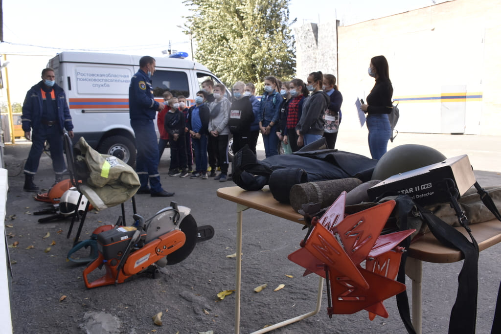 Шестиклассники школы-интерната Новошахтинска пришли в гости к сотрудникам Ростовской областной поисково-спасательной службы: их принимали в специализированном отряде РОПСС.