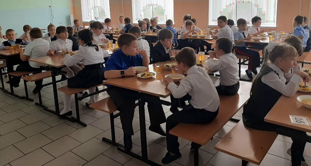 В первой школе дети учатся в одну смену. Кормят ребят в течение дня завтраками и обедами.