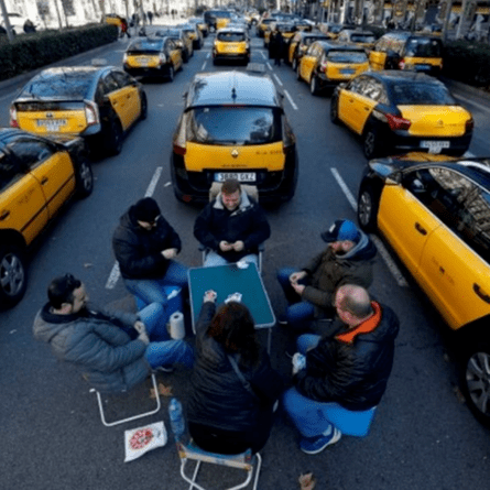 Акция протеста таксистов в Барселоне: водители требуют помощи в погашении автокредитов и поддержку потерявшим работу