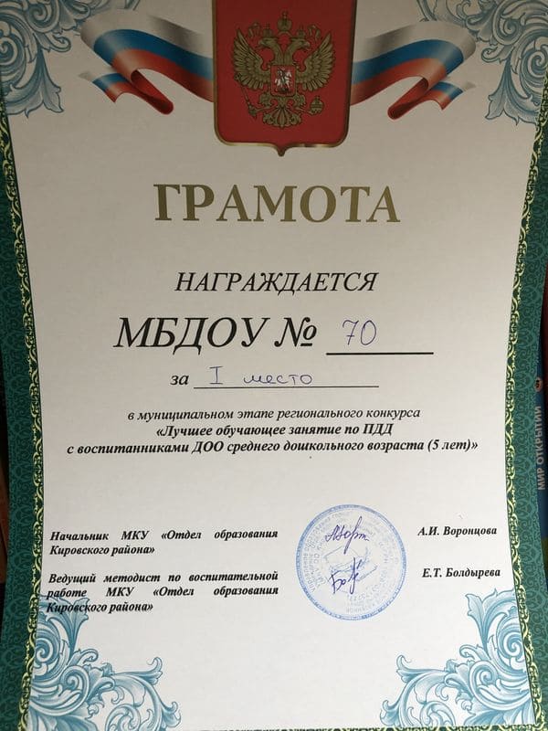 В этом году детский сад стал победителем в муниципальном этапе областного конкурса на лучшее обучающее занятие по ПДД с воспитанниками среднего возраста.