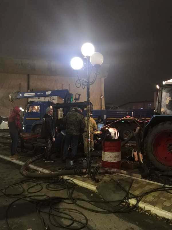 На предполагаемом месте аварии работает техника и временная перекачивающая станция для откачки и сброса стоков, с тем, чтобы точно определить проблемное место.