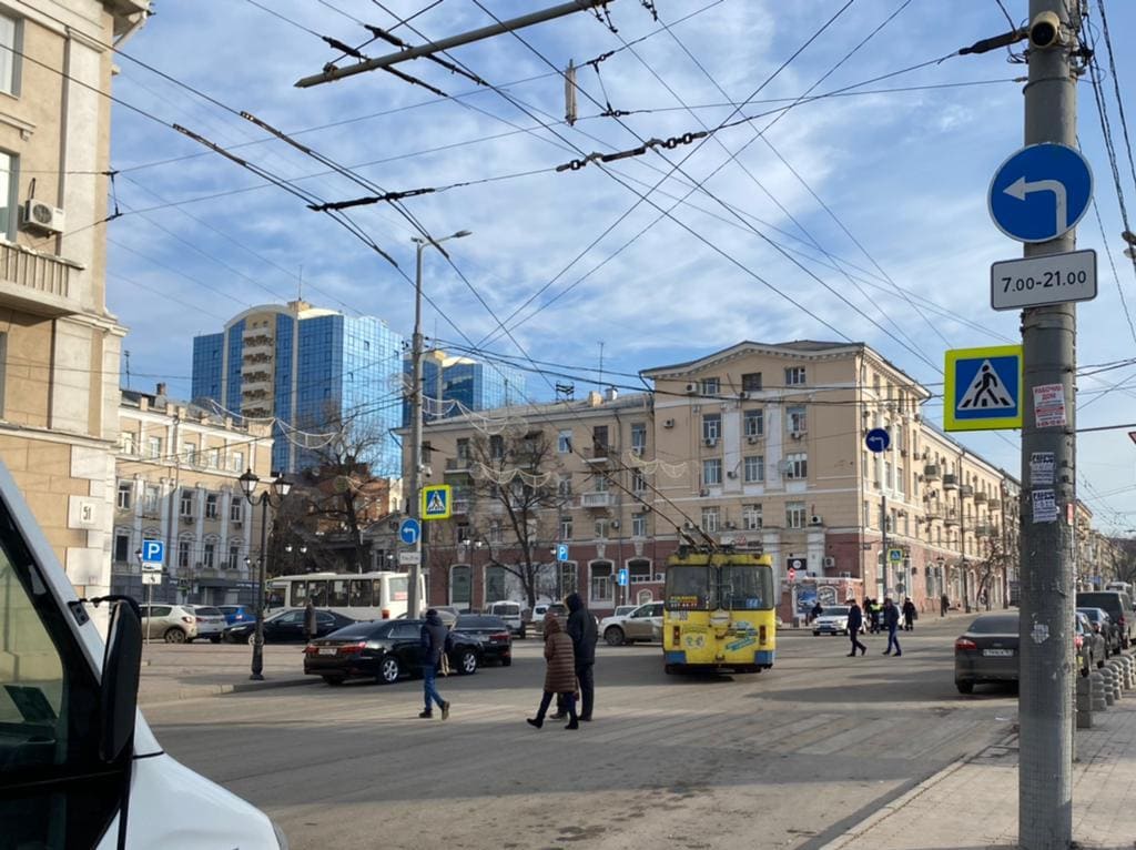 Водитель троллейбуса маршрута №7 при повороте с пр. Соборного на улицу Московскую не заметил переходящую по «зебре» ростовчанку.