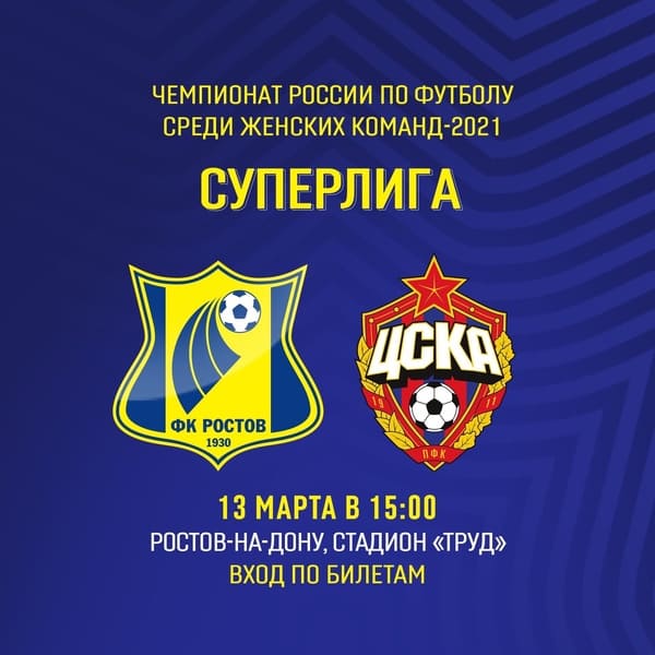 Женская футбольная команда «Ростов» сразиться с ЖФК ЦСКА на стадионе «Труд» в Ростове-на-Дону