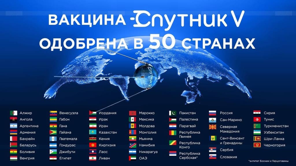 Вчера Намбия стала юбилейной 50-ой страной мира, где одобрено применение «Спутника V». В это число не входит Азербайджан, однако правительство страны издало указ воспользоваться заключенным российско-азербайджанским договором о приоритетной торговле в сфере медицины и закупить партию «Спутника V» для вакцинации жителей. Производство российского препарата в Сербии запланировано к середине мая, в Армении «Спутником V» начали прививать медицинских сотрудников.
