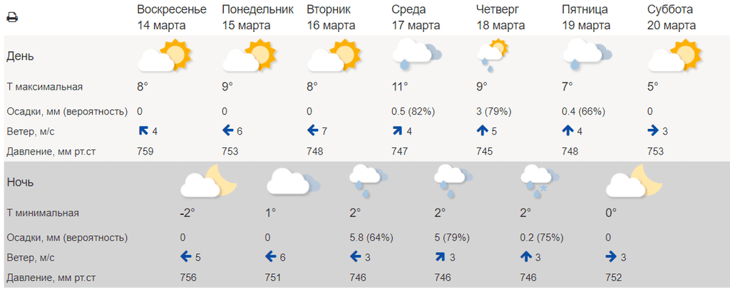 Пасмурность специалисты гидромета все-таки оставили: со среды, 17 марта и до пятницы обещают осадки, причем в четверг — достаточно значительные, до 3 миллиметров на кв.метр.