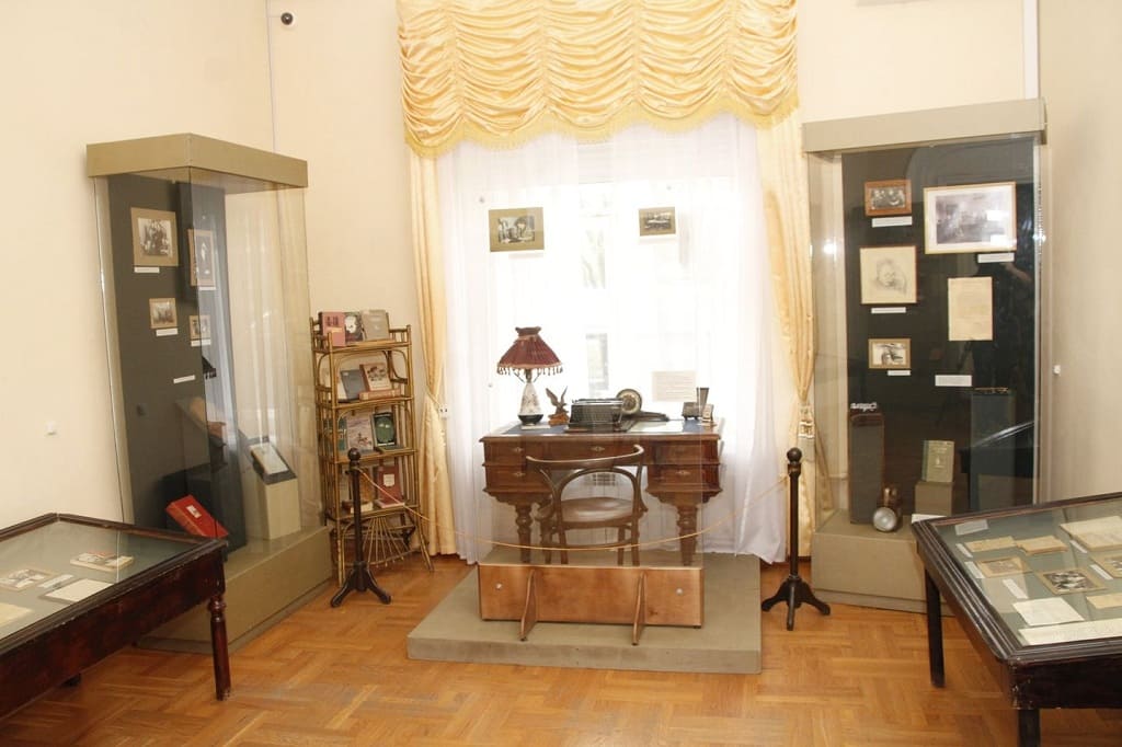 Экспонаты выставки разместили так, что в новочеркасском Атаманском дворце появился писательский кабинет со всеми атрибутами этого ремесла в недалеком еще прошлом: печатная машинка, лампа с абажуром, чернильница…