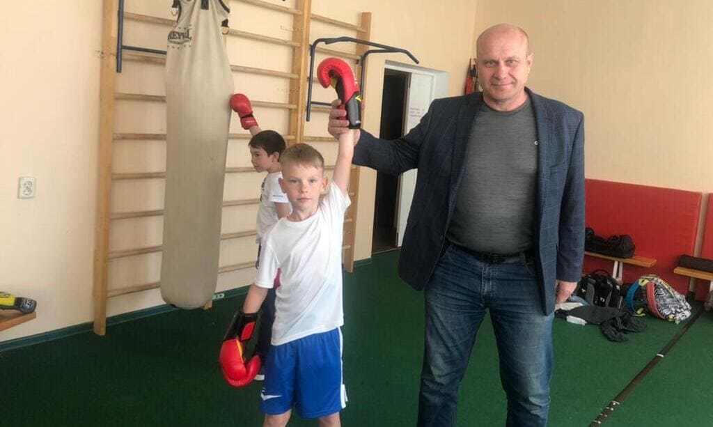 На снимке: участник шахматной команды «Наше время-100» Кирилл Волканов, успешно сыгравший на турнире по шахбоксу и куратор бокса в этом двоеборье Сергей Фёдорович Филимонов.
