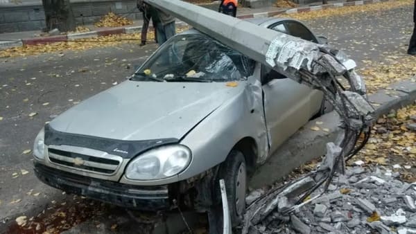 От удара столб ЛЭП рухнул прямо на машину — водитель скончался на месте ДТП еще до приезда медиков.
