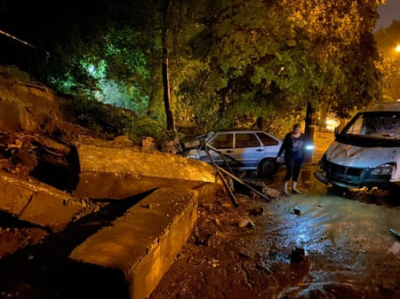 Уже поздно вечером на проспекте Стачки обвалилась кладка блоков, укрепляющих склон — пострадали несколько припаркованных автомобилей. Грязевой сель повредил и четыре машины, оставленные под Ворошиловским мостом.