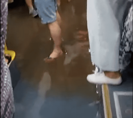 По щиколотку в воде ехали пассажиры автобусов из Западного жилого массива, причем некоторые «счастливцы» попали в эту ситуацию дважды: во время утреннего ливня, а потом на этом же маршруте по возвращению домой.