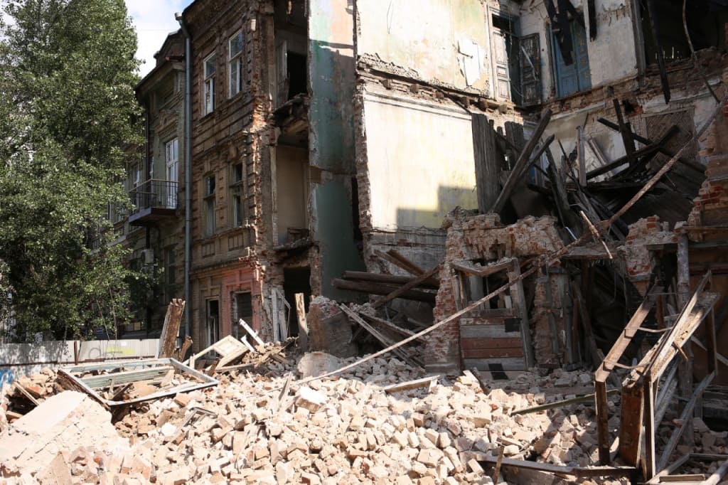 Сегодня в центре Ростова на улице Социалистической, 130 обрушилась фасадная стена старого аварийного дома.
