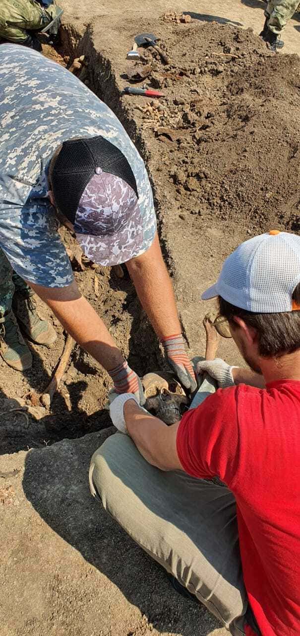 Известно, что тела погибших бойцов нашли на глубине меньше метра: сначала рабочие обнаружили пробитую каску, под ней — кости.