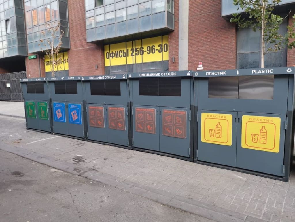 В отдельные контейнеры можно выбросить стекло, бумагу и пластик. Также есть два контейнера для традиционного выбрасывания смешанных отходов.