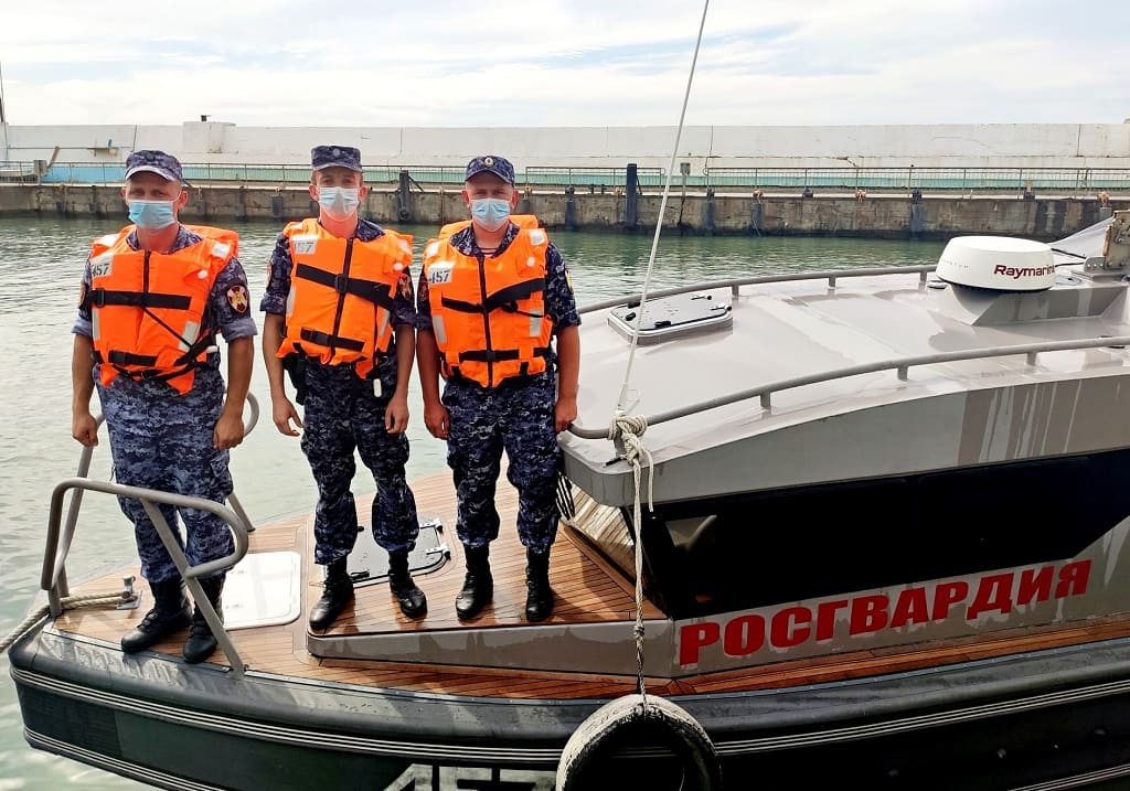 Сотрудники Росгвардии старший сержант полиции Николай Федоров, сержант полиции Вячеслав Поляков и младший сержант полиции Владислав Ванькевич узнали о происшествии, патрулируя акваторию международного детского центра «Артек».