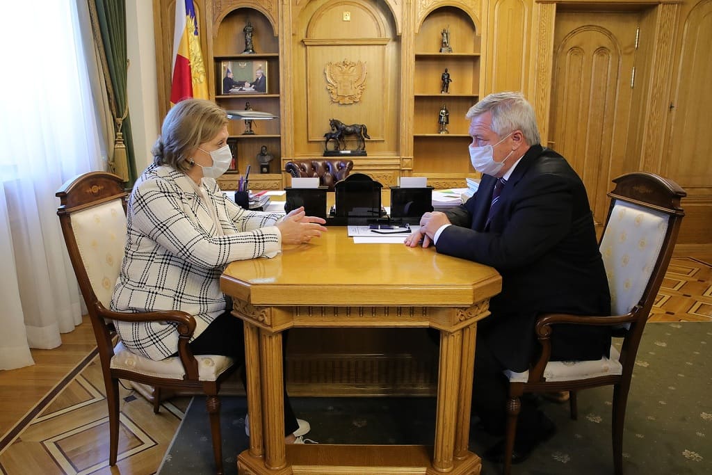 Сегодня Ростовскую область с рабочим визитом посетила руководитель Роспотребнадзора России Анна Попова. Она, в том числе, провела встречу с губернатором Василием Голубевым.