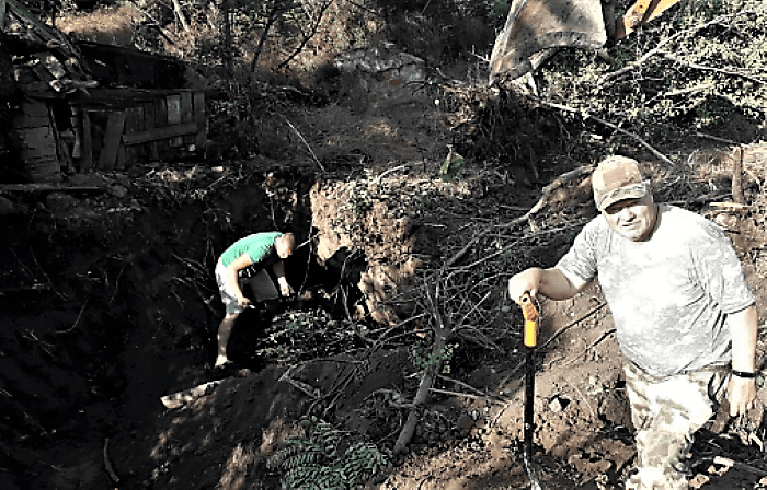 - Местная жительница которая была очевидцем казни, вспомнила, что один из плененных был человеком в возрасте, - рассказал Сергей Леонидович. - Он просил не убивать его, говорил, что дома остались жена и шестеро детей. Почему этого и двух других бойцов фашисты расстреляли, а не отправили в концлагерь, установить не удалось. Мы ранее приезжали в это место, заросшее травой и порослью акации. Проводили поисковые разведки. Но удалось только недавно найти заброшенную могилу.