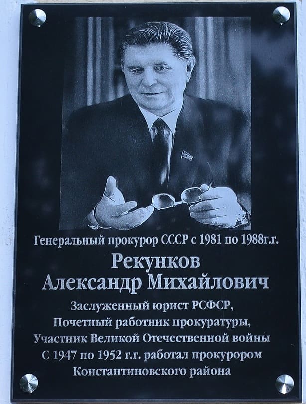 В следующем году российская прокуратура будет отмечать свое 300-летие. Значительный вклад в ее становление внес и наш земляк Александр Михайлович Рекунков. В его честь на здании Константиновской прокуратуры будет открыта мемориальная доска.