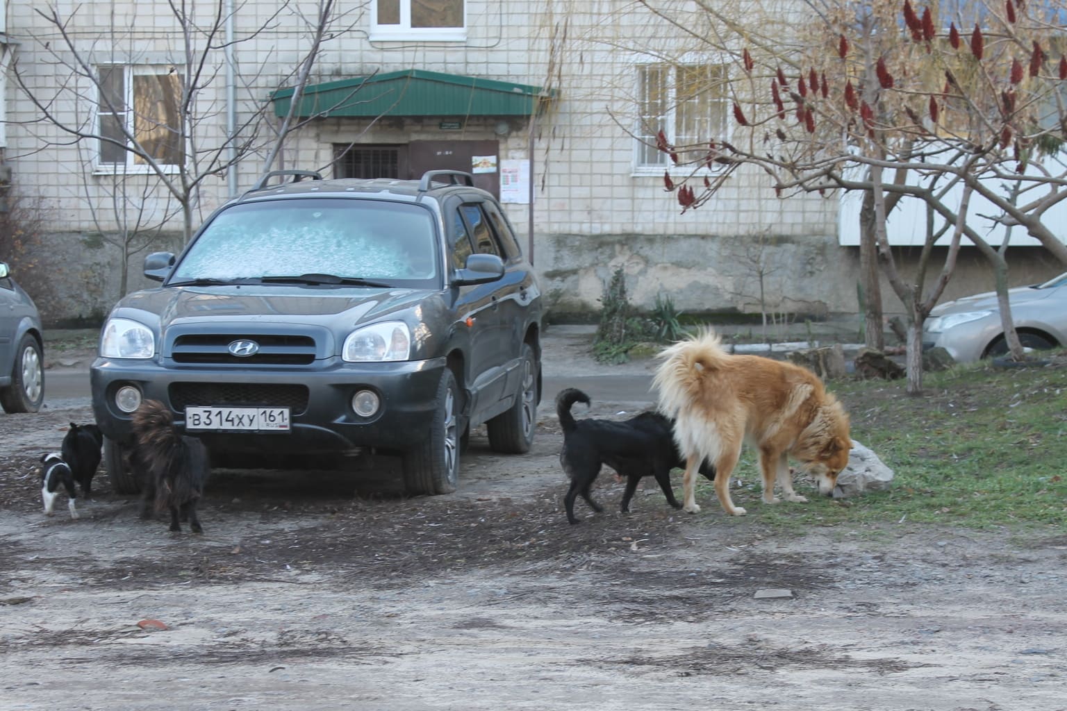 Очередную стаю бродячих собак наша коллега Наталья Нарсеева обходила пару часов назад около ковидного госпиталя в Усть-Донецке.