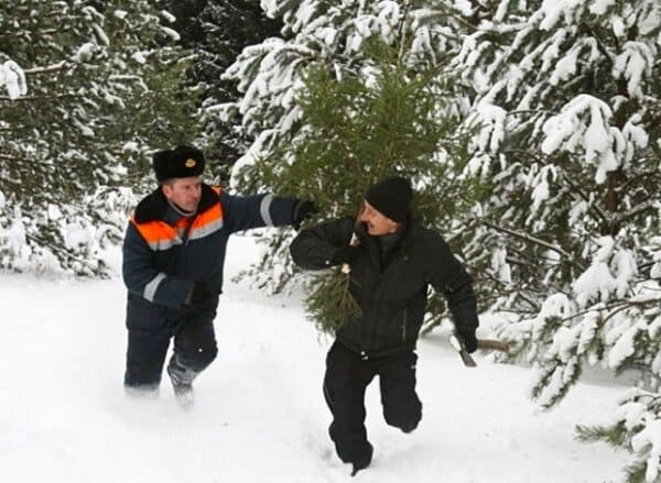 Напомним: по Кодексу об административных правонарушениях РФ за незаконную вырубку хвойных насаждений физлицу грозит штраф до 5 тысяч рублей, на время усиленного режима эта сумма вырастает в два раза. А вот если речь идет о вырубке двух и более деревьев, то здесь уже может наступить и уголовная ответственность вплоть до лишения свободы до двух лет.