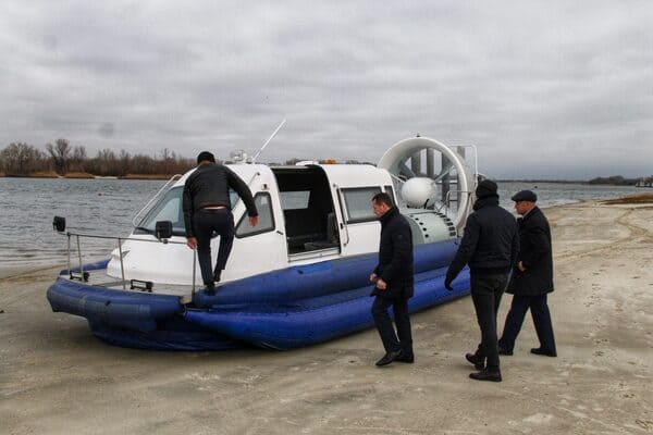 Судно на воздушной подушке прибыло в Азовский район из Нижнего Новгорода. Оно предназначено для переправы жителей хутора Задонье на «большую землю» зимой.