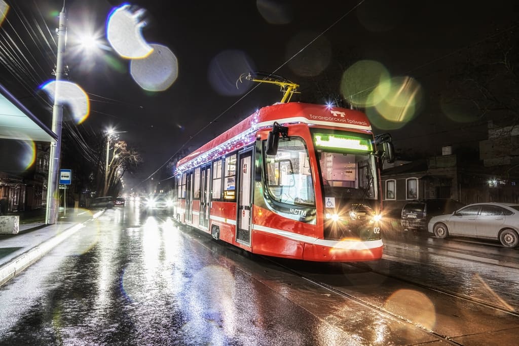 Так назвали два украшенных гирляндами трамвая, которые начали курсировать по улицам Таганрога.
