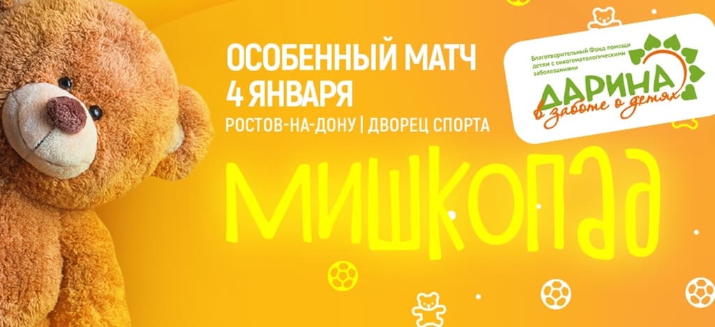 Красивая и трогательная акция — мишкопад — состоится сразу же после финального свистка матча между гандболистками клубов «Ростов-Дон» и «Звезда» во Дворце спорта. Суть акции проста: перед игрой болельщикам предлагают приобрети плюшевых мишек, средства от реализации который пойдут на лечение тяжелобольного ребенка. В этом января донские гандболистки и благотворительный фонд "Дарина" таким образом собирают деньги для лечения 12-летнего мальчика Михаила Лашманова и 13-летней девочки Елены Канацев — оба ребенка болеют муковисцидозом.