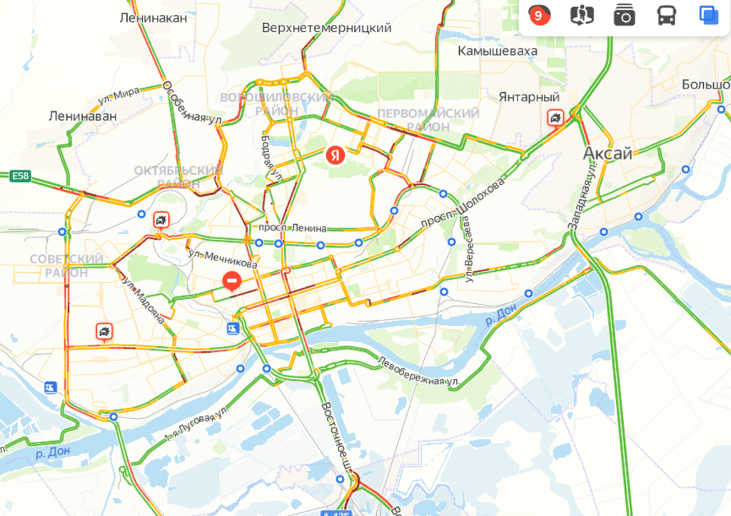 Также существенный затор образовался на магистрали из Стройгородка и Военведа — крайне медленно движется транспорт по улицам Дачной и Шеболдаева, а также переулку Ашхабадскому. Не могут выехать по направлению в центр Ростова жители поселка 2-го Орджоникидзе — заторы на улицах Курчатова и Менжинского.