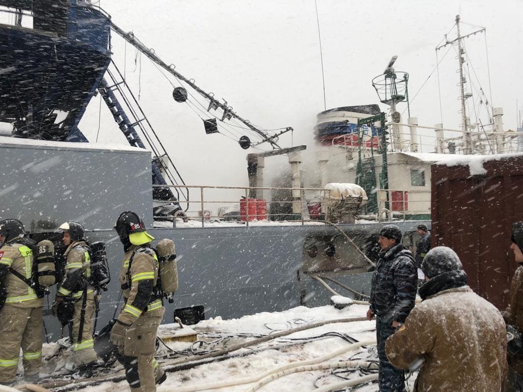 Сообщение о возгорании поступило на пульт диспетчерской в 15 часов: огонь распространился по трюму судна для дноуглубительных работ (земснаряд).
