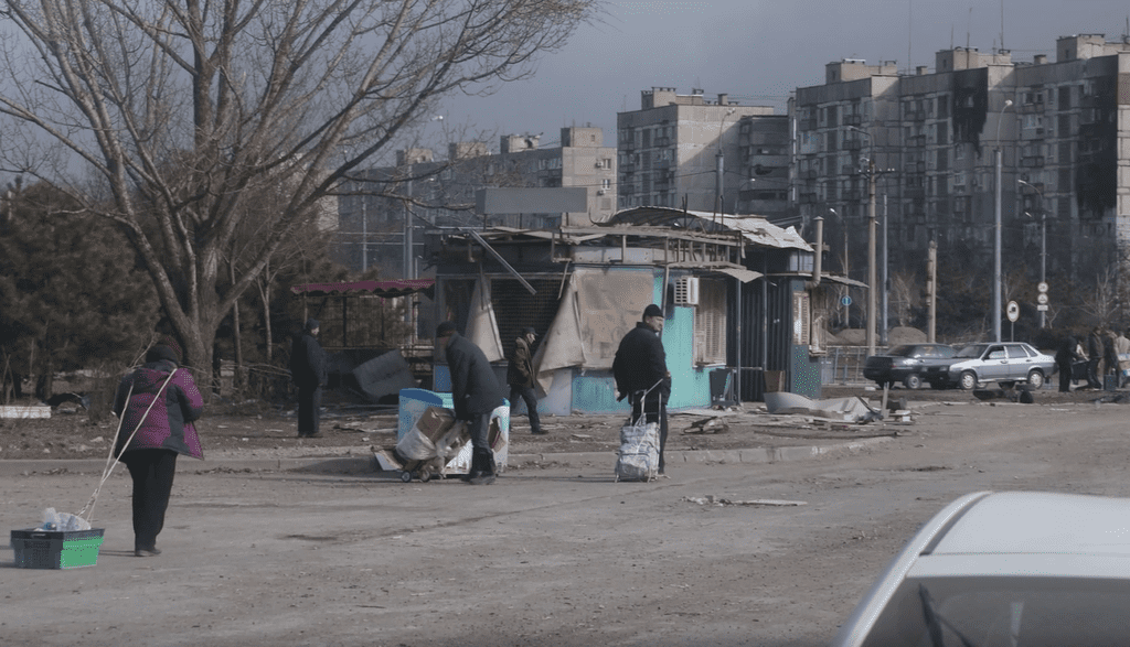Гуманитарный груз был доставлен на бульвар Шевченко — это около двух километров от центра Мариуполя. Раздали 1,7 тысячи наборов, в том числе собранных специально для семей с детьми.