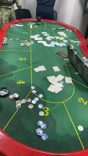 В помещении были установлены специальные столы для игры в покер. Правоохранители изъяли игральные карты, фишки и другое оборудование для азартных игр.