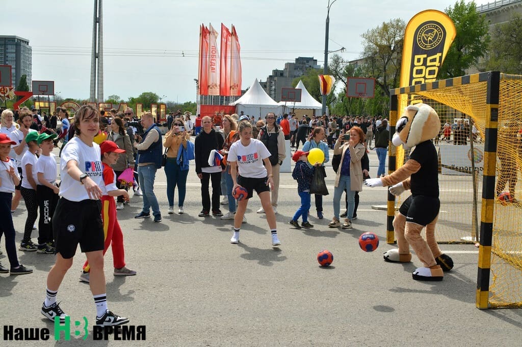 На большом участке была разбита гандбольная арена, на которой олимпийские чемпионки Владлена Бобровникова, Анна Вяхирева и Полина Кузнецова выступили в роли капитанов команд, которые состязались в веселых стартах, эстафетах, бросках по воротам, упражнениях на скорость.