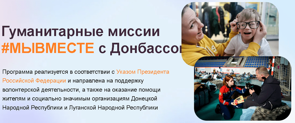 Общероссийское волонтерское движение «МыВместе» запускает набор добровольцев для участия в гуманитарных миссиях по восстановлению Донбасса. В первую очередь необходимы волонтеры-медики, строители, психологи и педагоги.