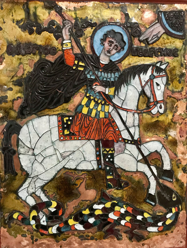 У апрельского симпозиума оказалась очевидная особенность: на большинстве икон, выполненных за время его работы, - образы святых - защитников православного воинства. Это Георгий Победоносец, Архангел Михаил, святые благоверные князья Александр Невский и Димитрий Донской.
