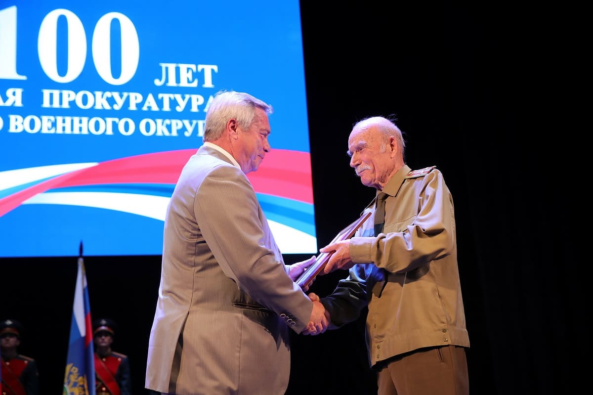 1 августа в окружном Доме офицеров торжественно отметили вековой юбилей военной прокуратуры Южного (Северо-Кавказского) военного округа. В праздничной церемонии приняли участие донской губернатор Василий Голубев, заместитель Генерального прокурора России – Главный военный прокурор страны Валерий Петров, заместитель Полномочного представителя президента России в ЮФО Анатолий Сафронов, ветераны военного надзорного ведомства и те, кто служит в нем сейчас.