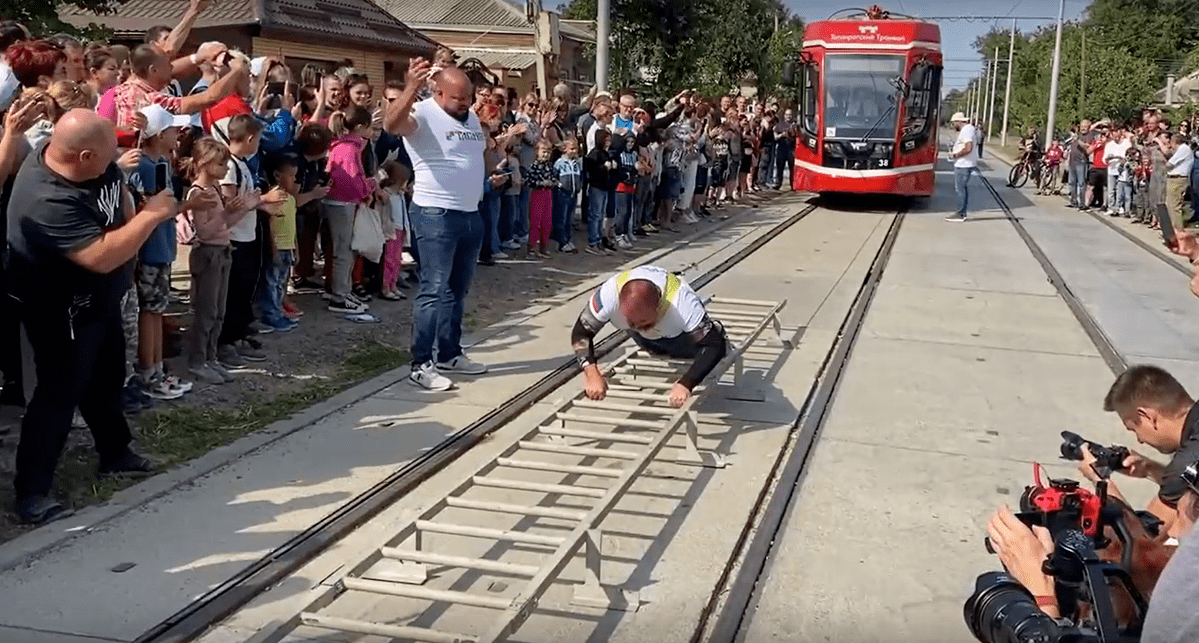При этом, как отметили в компании «Синара – Городские решения», предоставившей «инвентарь» для установки рекорда, на выбранном Александром участке дорога имеет небольшой наклон вверх. Так что состав из двух трамвайных вагонов на человеческой тяге, по факту, сдвинулся на полтора метра в горку.