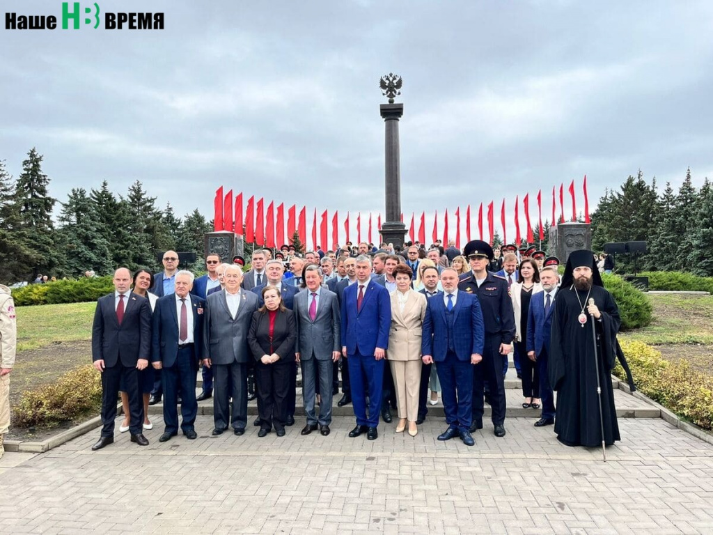 В церемонии приняли участие заместитель полномочного представителя Президента России в Южном федеральном округе Владимир Гурба, депутаты Государственной думы, Законодательного собрания области, председатель городской думы - глава города Зинаида Неярохина, член координационного совета по вопросам социально-экономической поддержки ветеранов при правительстве Ростовской области Герой России Владимир Булгаков, председатель городского совета ветеранов Валентин Гербач, другие ветераны, представители молодежных организаций и трудовых коллективов, юнармейцы.