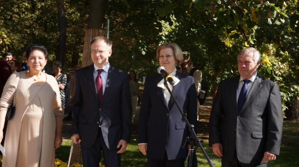 В церемонии открытия памятника выдающемуся ростовскому микробиологу Зинаиде Ермольевой приняла участие федеральная делегация. На торжества в честь Мадам Пенициллин прибыли главный санитарный врач России Анна Попова и помощник президента России Владимир Мединский. Вместе с донским губернатором, главами ростовской мэрии и донского управления Роспотребнадзора они открыли памятник Ермольевой у РостГМУ.